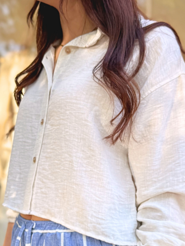 Camisa de tela suave y liviana, con botones frontales y calce relajado,