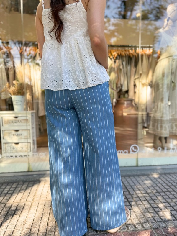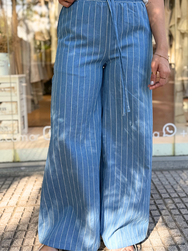 Palazo corte amplio, forrado en el interior con rayas verticales y calce relajado. Súper cómodo y favorecedor para todos los días.