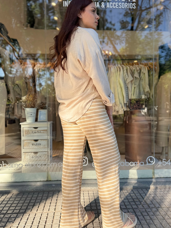 Es la prenda ideal para quienes buscan comodidad y estilo en un mismo look. Confeccionado en un tejido de hilo suave y elástico, ofrece una caída liviana y fluida, perfecta para el día a día o para un look relajado pero sofisticado.