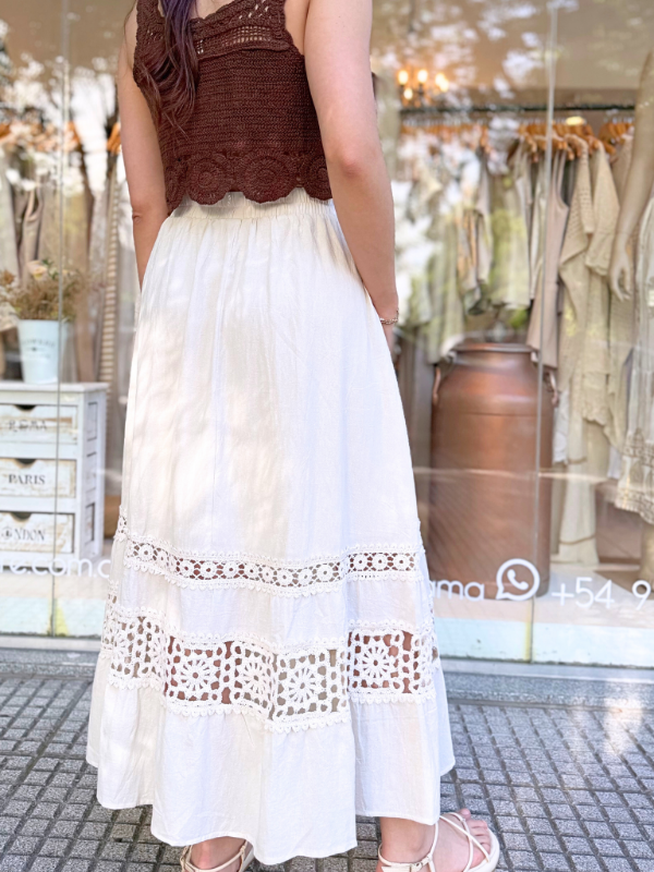 Dale un aire romántico a tus looks con nuestra pollera larga con detalles en broderie,